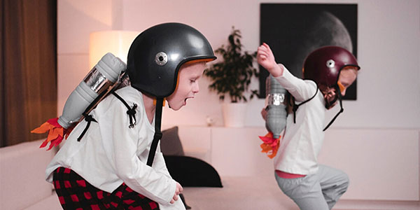 ​As they run outside or start to wrestle in the hallway, give them a hint of how they could play as a team. Think of characters they love. For example: "Hey, you be Harry and you be Hermione! Pretend you’re heading into the Forbidden Forest." Or suggest one sibling be the teacher, one the student. One child could be the shopper, the other the check-out person. Make sure they switch roles after a while.​​