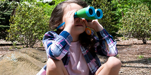 ​​​​​Put up a birdfeeder and enjoy watching the wildlife it attracts to your window or yard. Count how many different types of visitors you have. If you have binoculars, get a closer look ​​at others on nearby perches. For birds you can hear but can’t see, try to guess where they are. For extra fun, try to make the same sounds they do with their calls and songs.