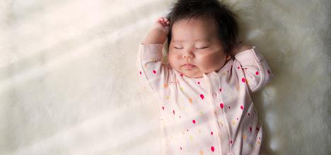 By about six months, breastfed babies start sleeping longer. In the meantime, parents and caregivers can encourage healthy sleep by following these two tips:
