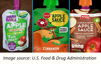 The FDA traced the source of lead to cinnamon used in the products. A cinnamon applesauce product sample that was tested by the FDA had 200 times more lead than the FDA allows in food.