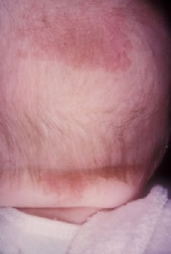 • Deeper in color (dark red or purple) than stork bites (salmon patches)