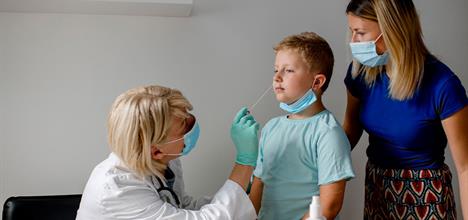 Otro tipo de prueba de diagnóstico es la prueba de antígeno. Se utiliza un frotis nasal o de la garganta. Algunas pruebas de antígeno son aprobadas para dar resultados rápidos, disponibles en una media hora o menos. Estos tests son generalmente confiables. A veces, la prueba de reacción en cadena de la polimerasa (PCR) es necesaria para confirmar los resultados, como como también luego de una enfermedad o si un niño no presenta síntomas.