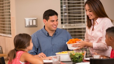 Al mismo tiempo, convierta la hora de la comida en un tiempo para estar en familia cuando sea posible. Intenten comer la mayoría de sus comidas juntos. Los niños aprenden más sobre las buenas opciones de alimentos y una nutrición saludable cuando los miembros de la familia se reúnen para el desayuno, el almuerzo y la cena. Las investigaciones también demuestran que los niños comen más verduras y frutas, y consumen menos alimentos fritos y bebidas azucaradas cuando comen con toda la familia.
